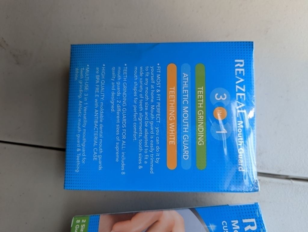 6 BOXES OF NEW REZEAL 3 IN 1 DENTAL MOUTHGUARDS RETAIL $125. 8 PER BOX 2 SIZES