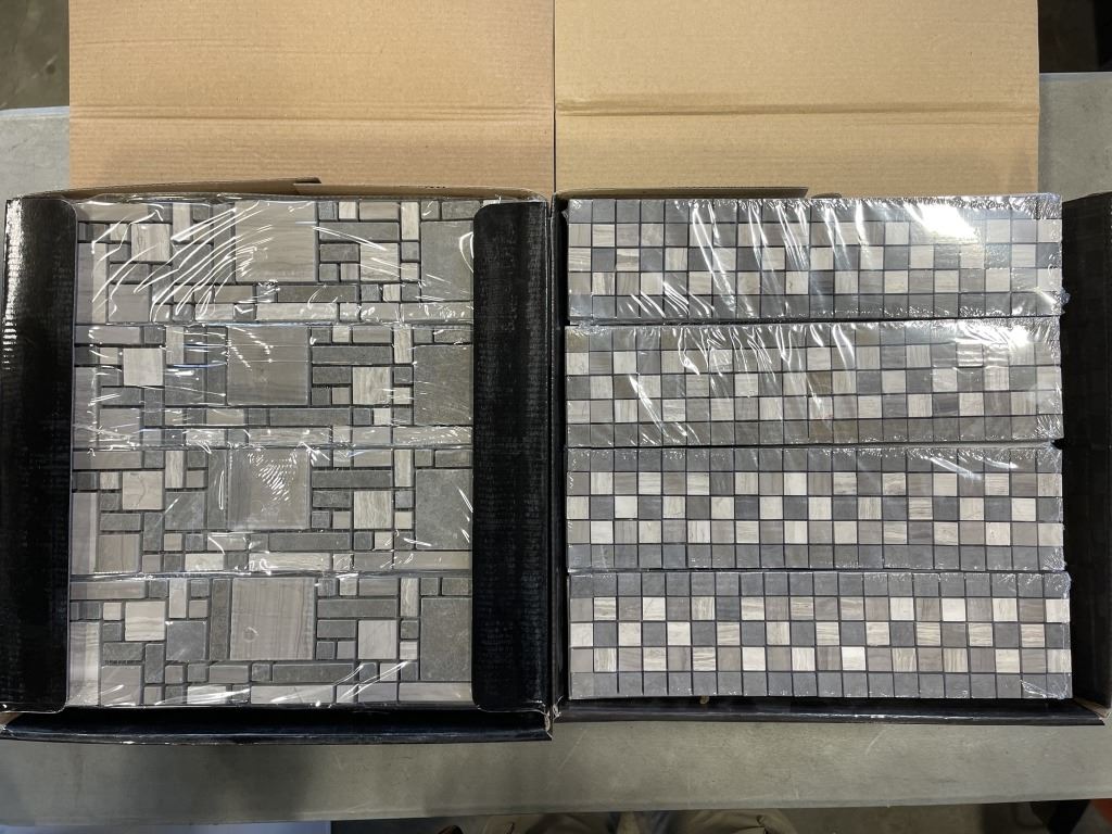 6 BOXES OF SPA MOSAIC MARBLE TILES, 2 DIFFERANT PATTERNS