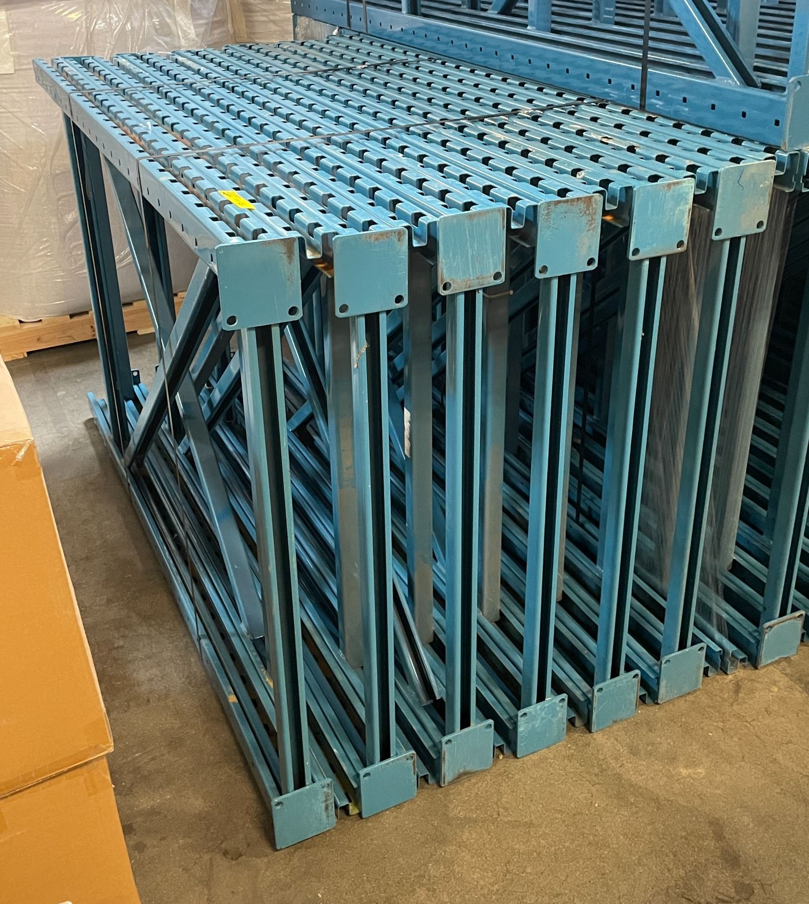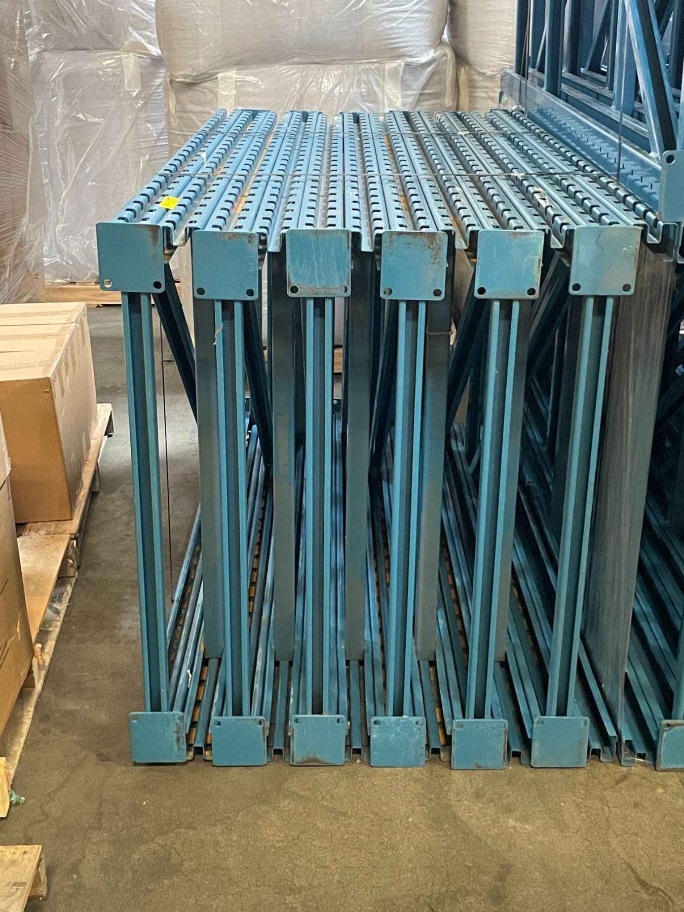 6 Blue pallet racking of uprights (approx. 43in W 73in H 7in D)