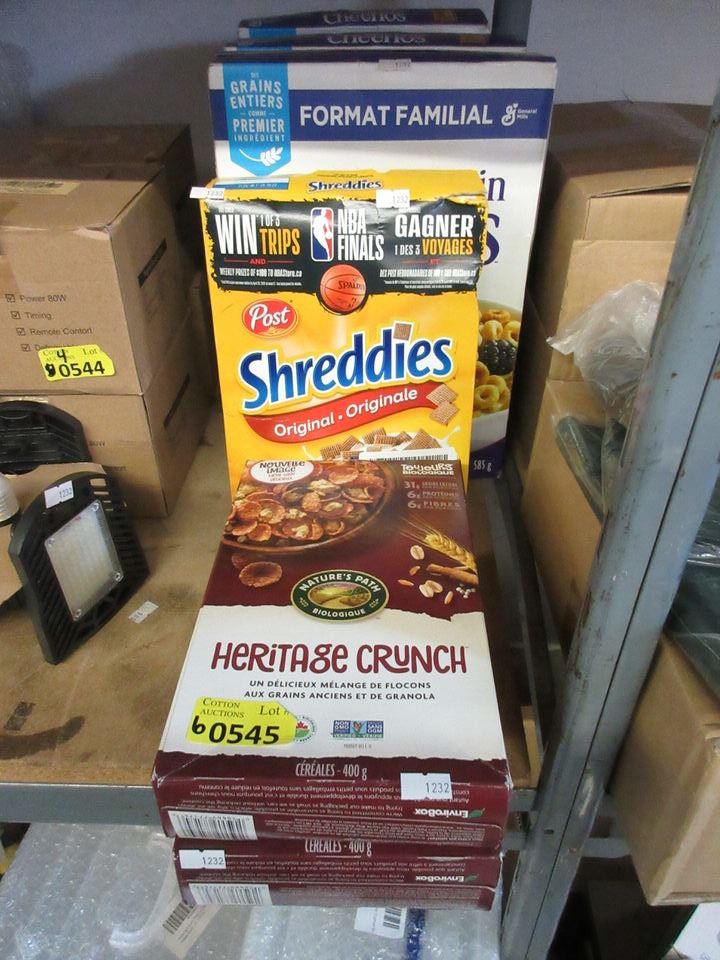 Shreddies, Cheerios, and Natures Path Crunch. BB: Dates are Nov & Dec 2021.