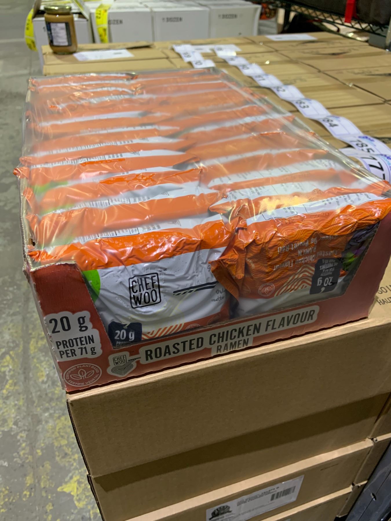 6 CASES OF 24 CHEF WOO ROASTED CHICKEN FLAVOUR PLANT BASED RAMEN (85G EACH)