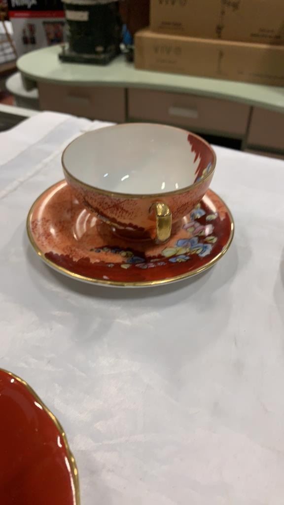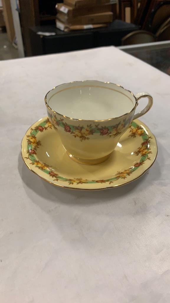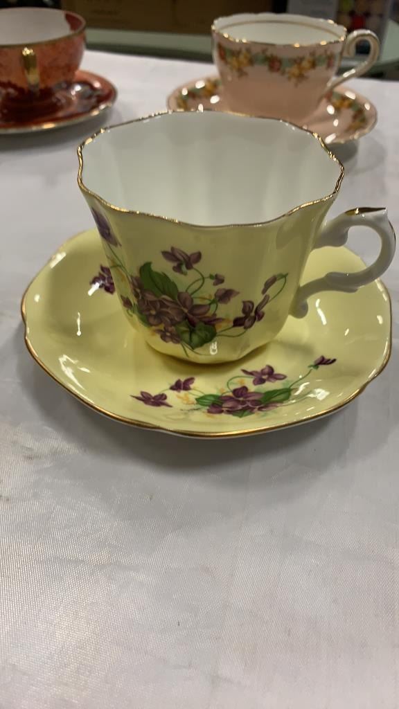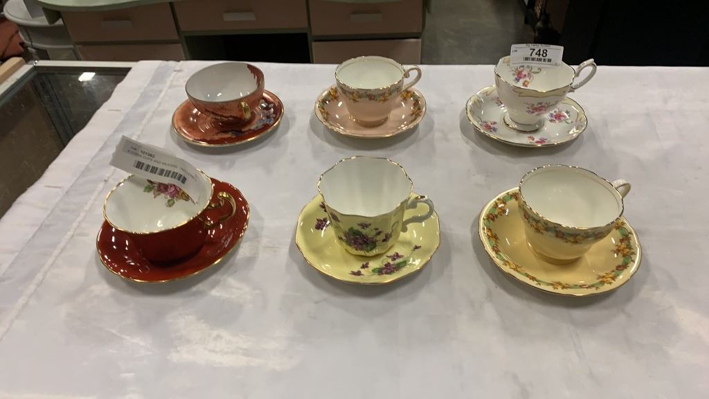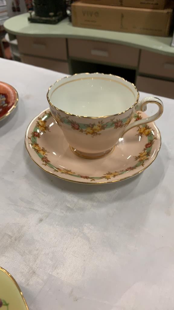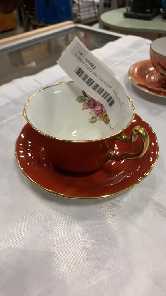 6 CHINA CUPS AND SAUCERS - INCLUDING 2 AYNSLEY, ADDERLEY, ROYAL ALBERT, CONSORT AND ELLIE