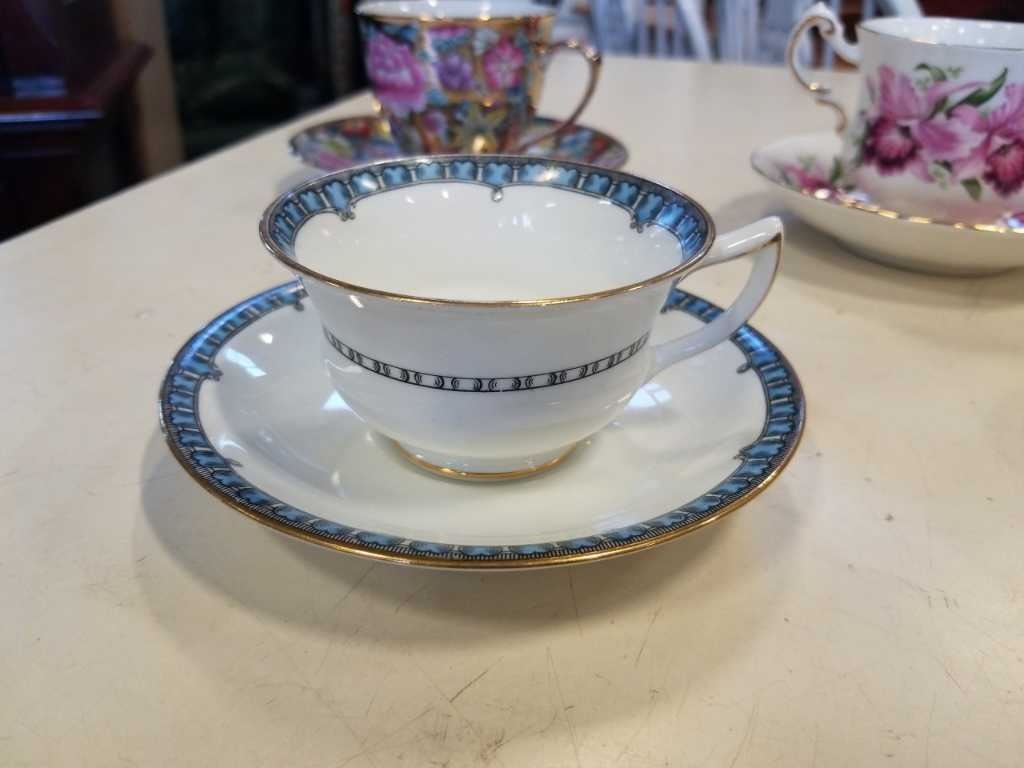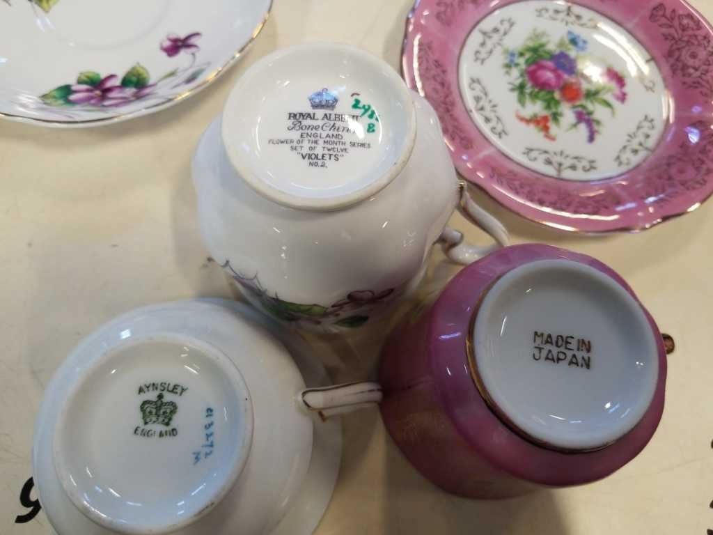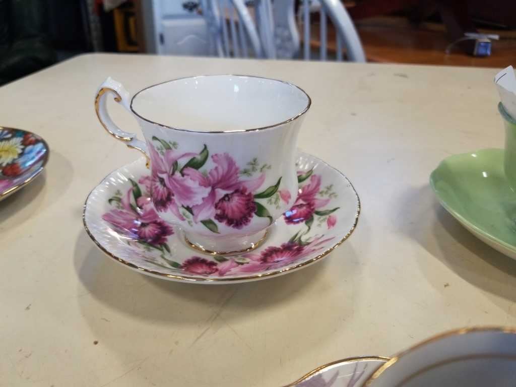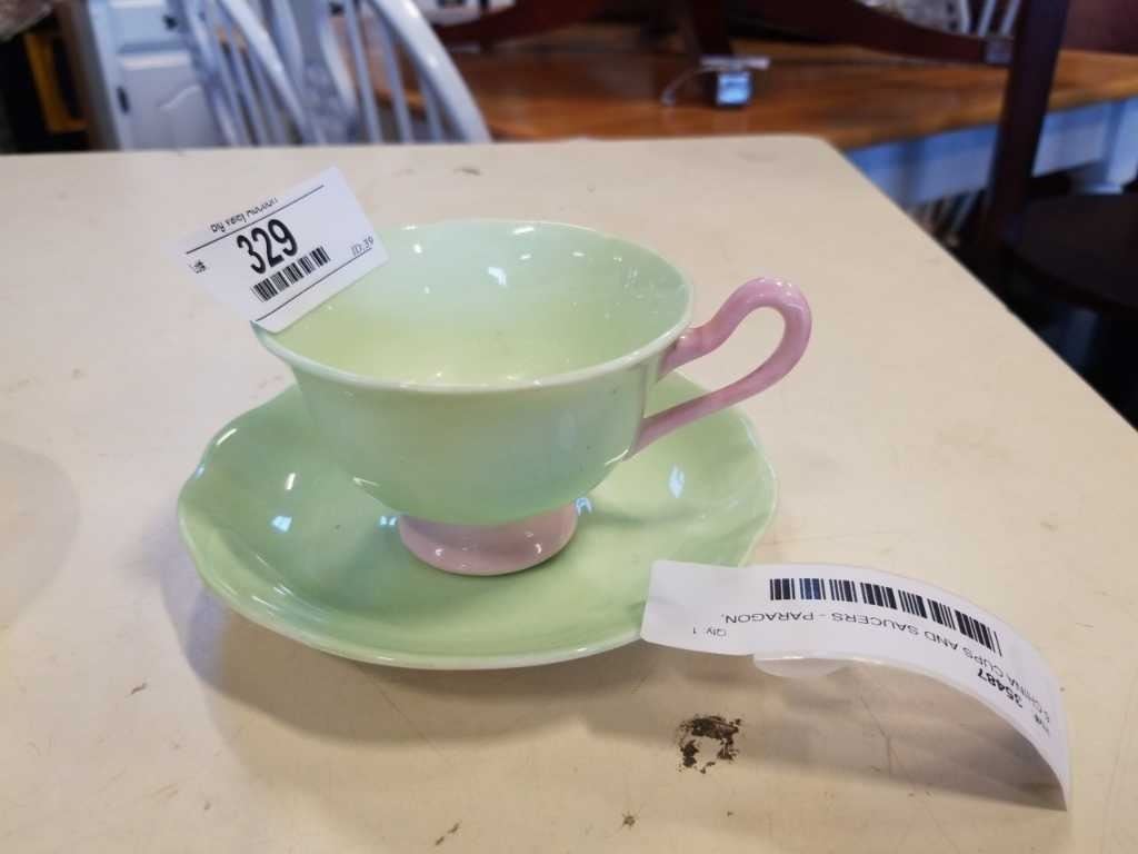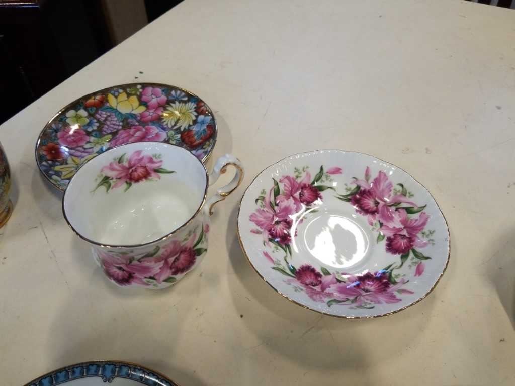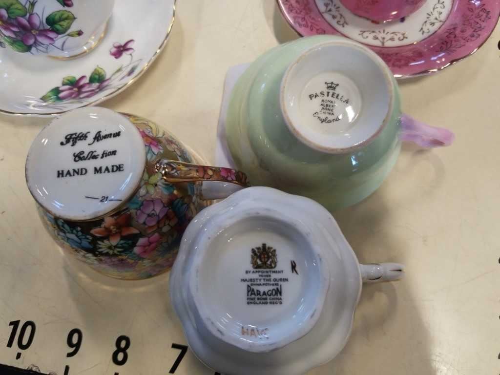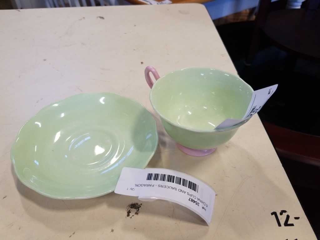 6 CHINA CUPS AND SAUCERS - PARAGON, ROYAL ALBERT, AYNSLEY, PASTELLA AND OTHERS