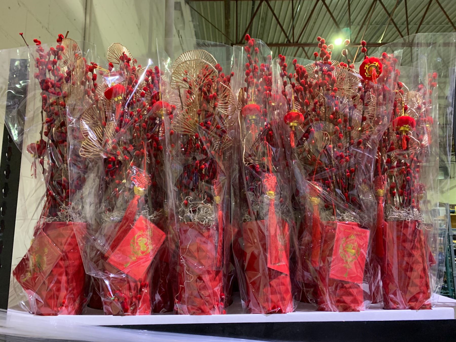 6 CHINESE NEW YEAR FAUX PLANTS IN CERAMIC PLANTERS