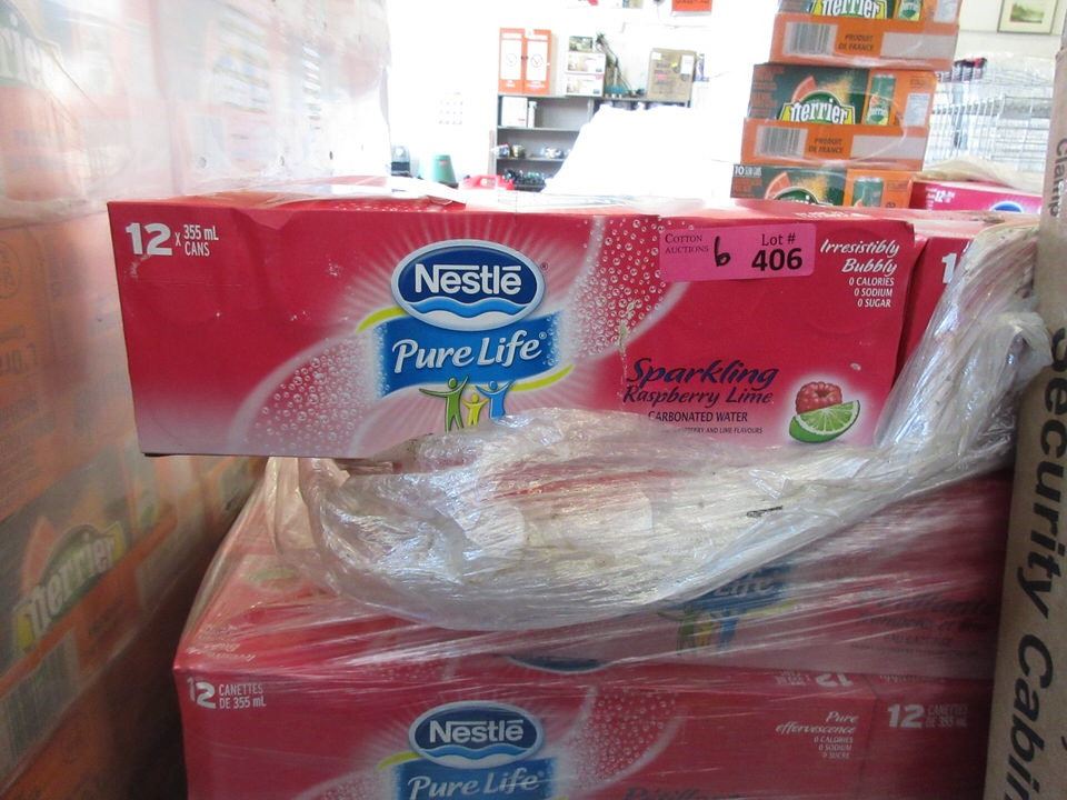 Nestle Pure Life. Natural flavours. Calorie-free, sodium-free, sugar-free. Each case has 12 x 355 ml cans. BB: July 2019