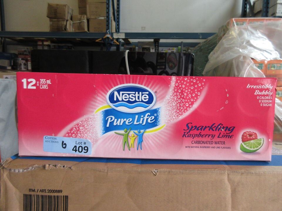 Nestle Pure Life. Natural flavours. Calorie-free, sodium-free, sugar-free. Each case has 12 x 355 ml cans. BB: July 2019