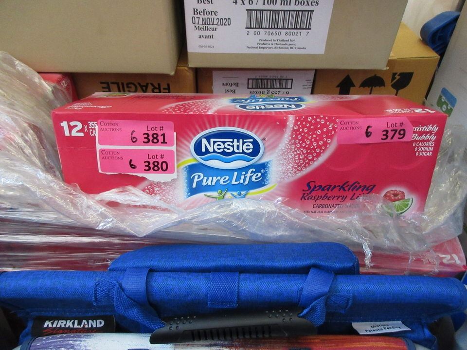 Nestle Pure Life. Natural flavours. Calorie-free, sodium-free, sugar-free. Each case has 12 x 355 ml cans. BB: July 2019