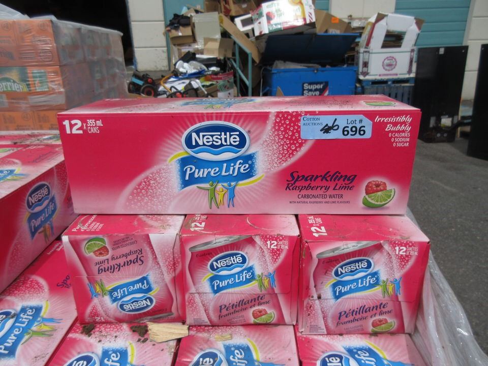 Nestle Pure Life. Calorie-free, sodium-free, sugar-free. Each case has 12 x 355 ml cans. BB: July 2019