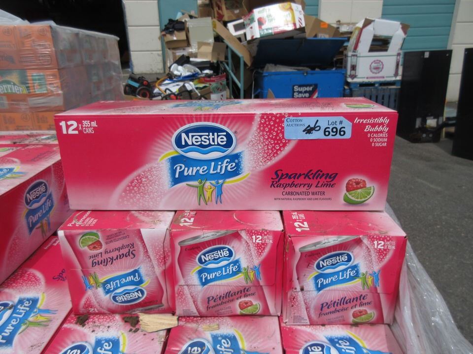 Nestle Pure Life. Calorie-free, sodium-free, sugar-free. Each case has 12 x 355 ml cans. BB: July 2019