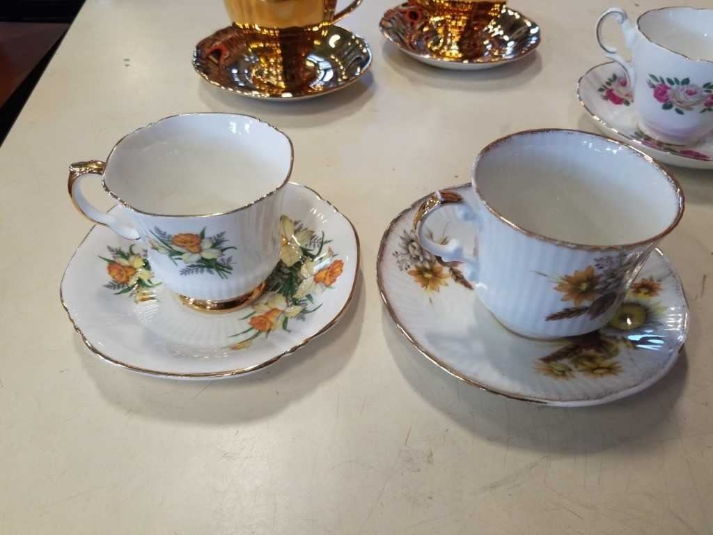 6 China teacups and saucers: Royal Winton, Royal Adderly, Coalport and more