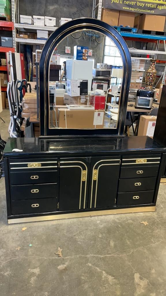 6 DRAWER BLACK DRESSER WITH MIRROR
