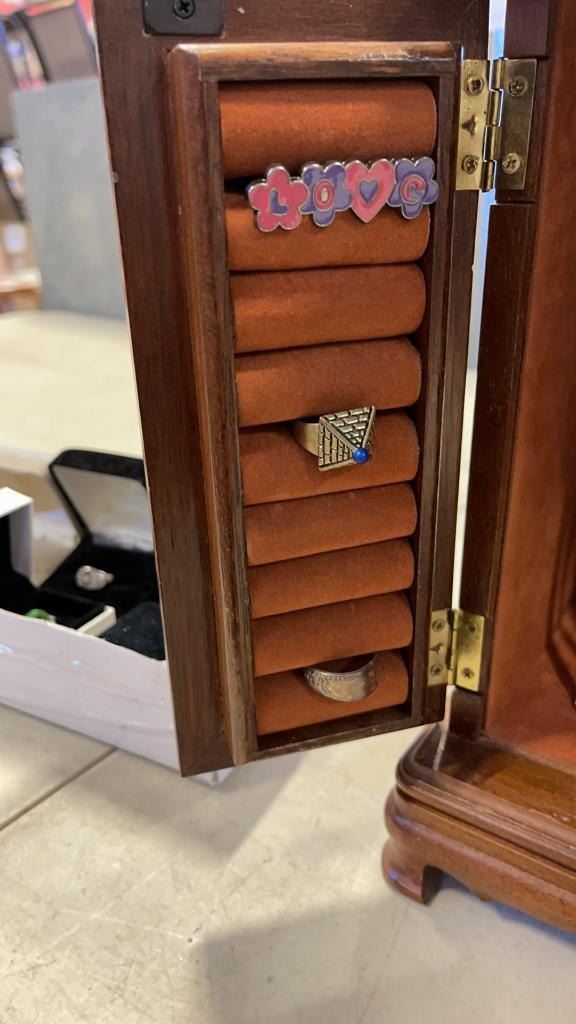6 ESTATE RINGS AND JEWELRY BOX WITH CONTENTS