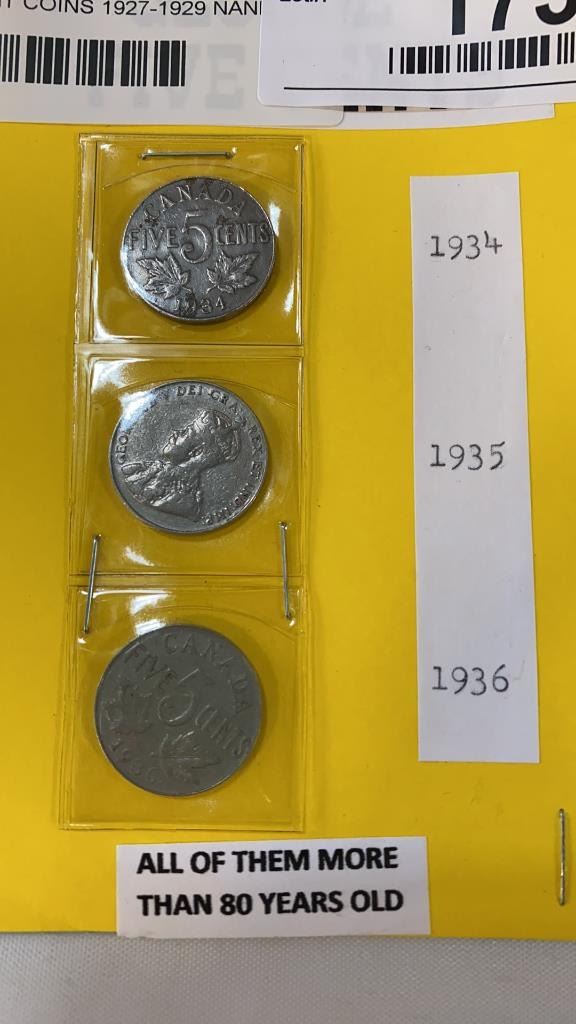 6 GEORGE V 5 CENT COINS 1927-1929 NAND 1934-1936