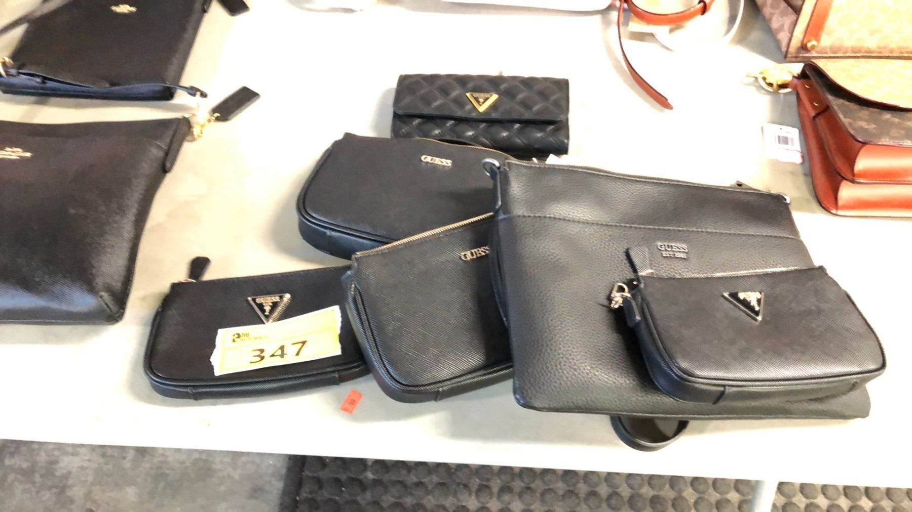 6 GUESS BLACK PURSES INCLUDING CROSSBODY, MINI AND CLUTCH BAG