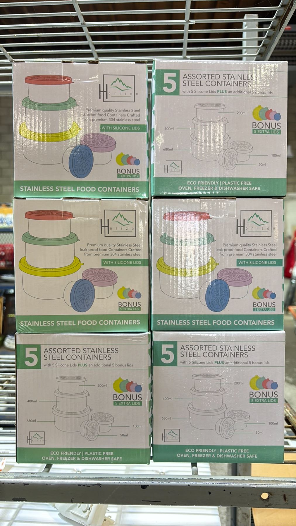 (6) HORIZON 5-PC STAINLESS STEEL FOOD CONTAINERS