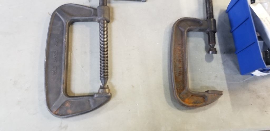 6 INCH AND 8 INCH C-CLAMPS, AND ALUMINUM MILLING BLOCKS