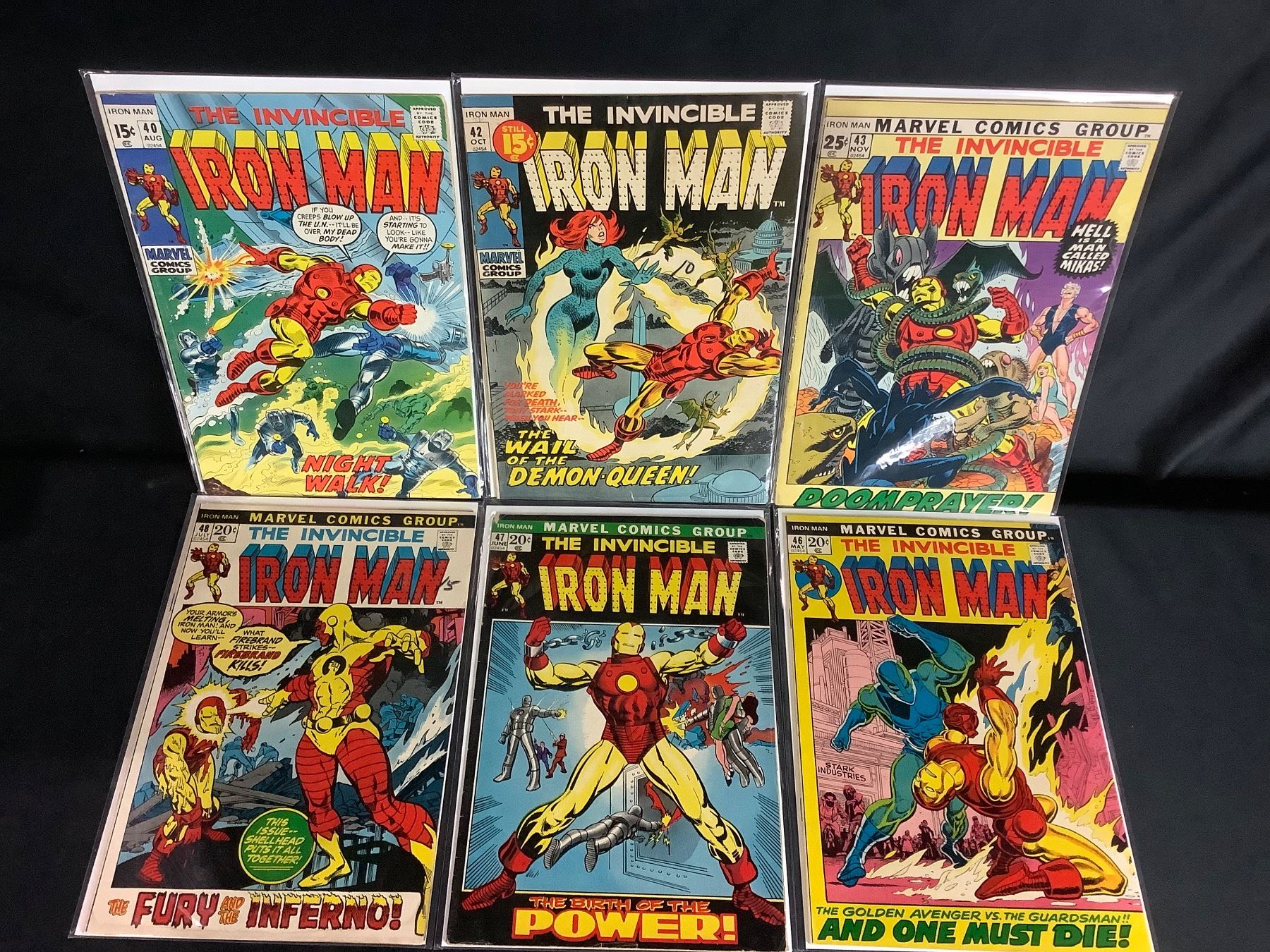 6 MARVEL THE INVINCIBLE IRON MAN COMIC BOOKS: 40, 42, 43, 46, 47, & 48