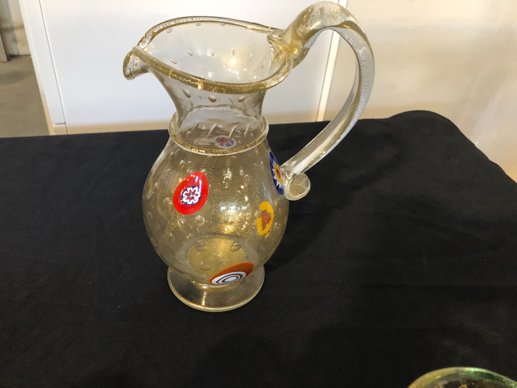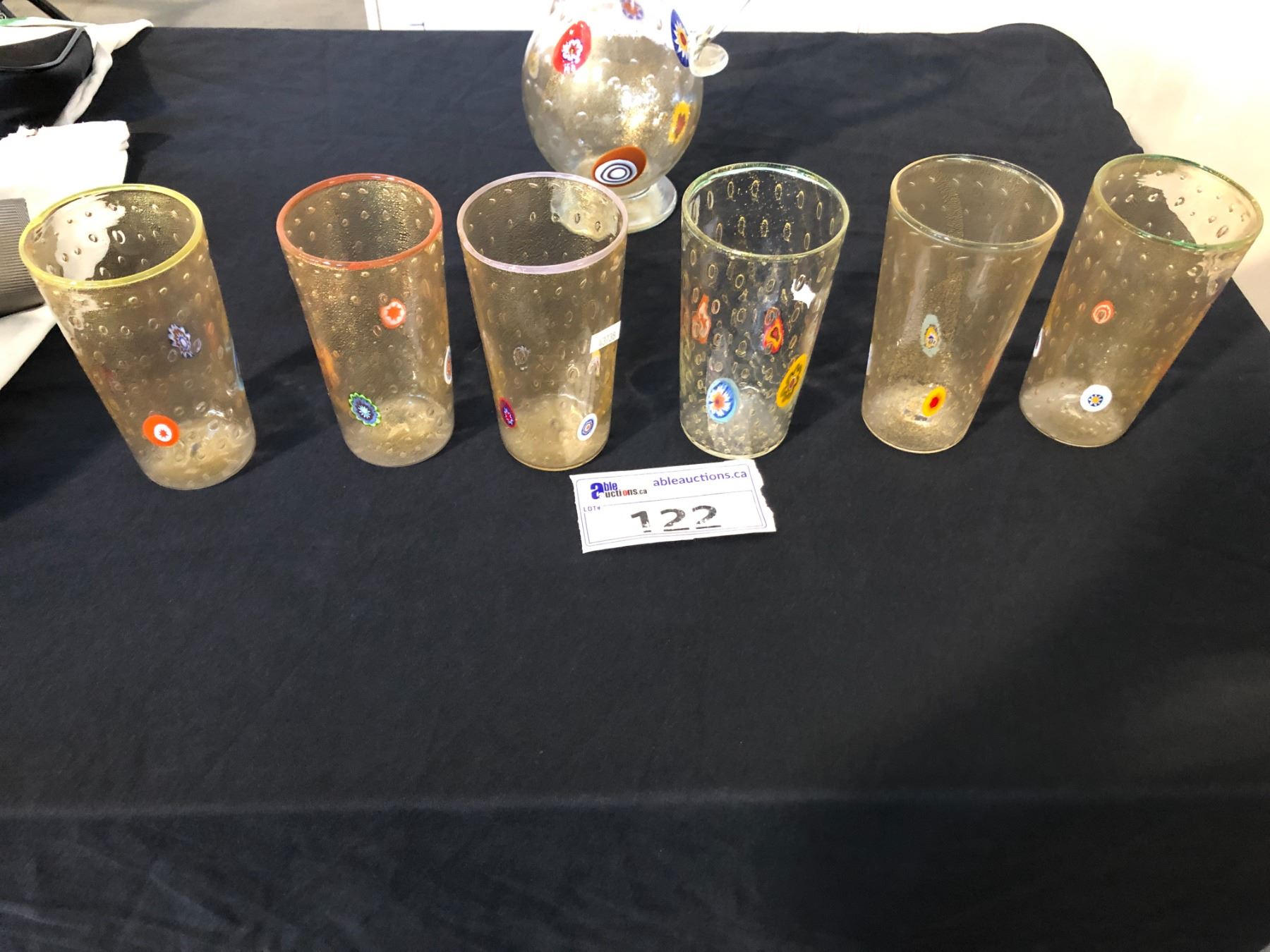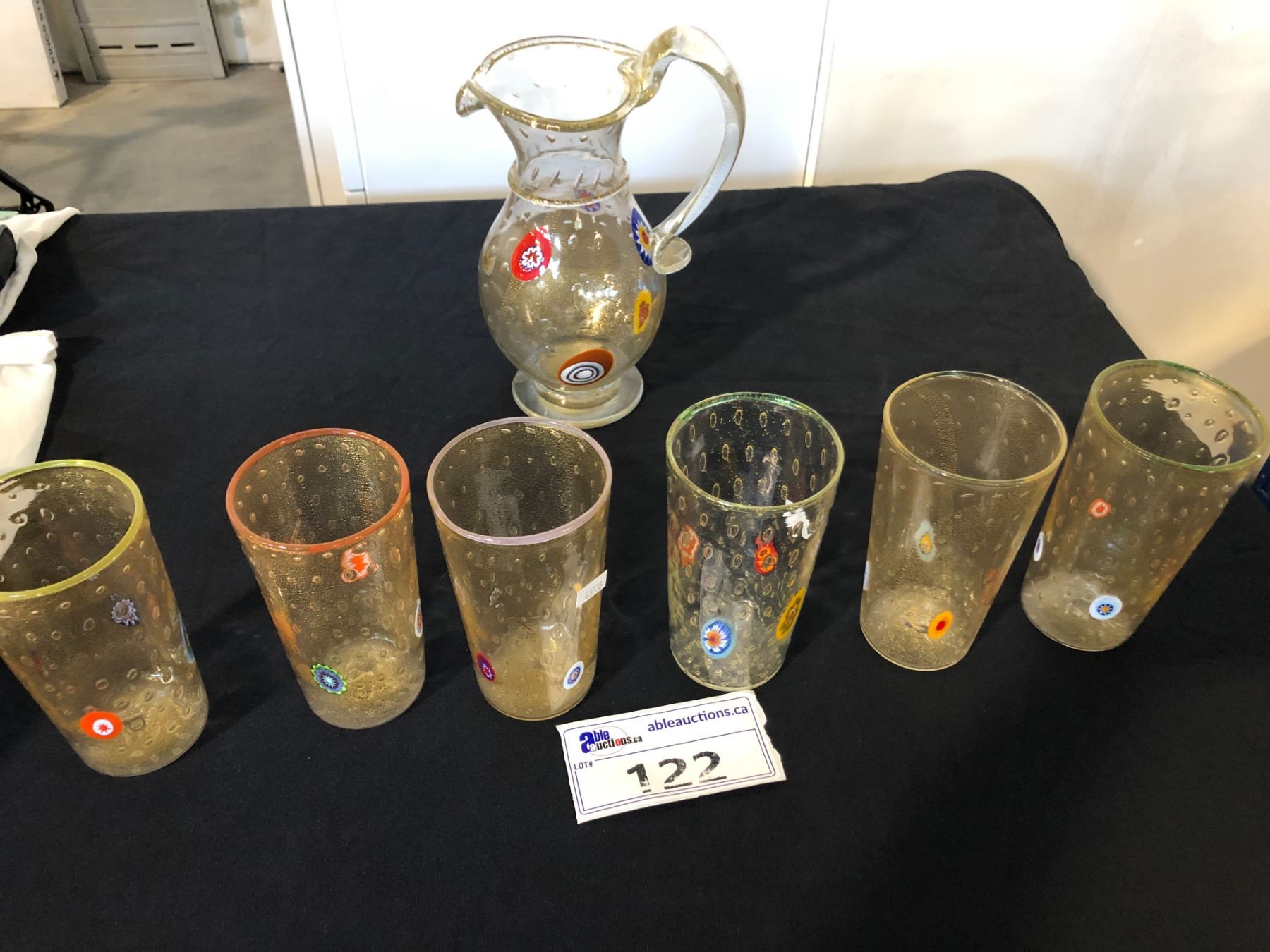 6 MURANO GLASS MADE IN ITALY DRINKING GLASSES WITH MATCHING PITCHER