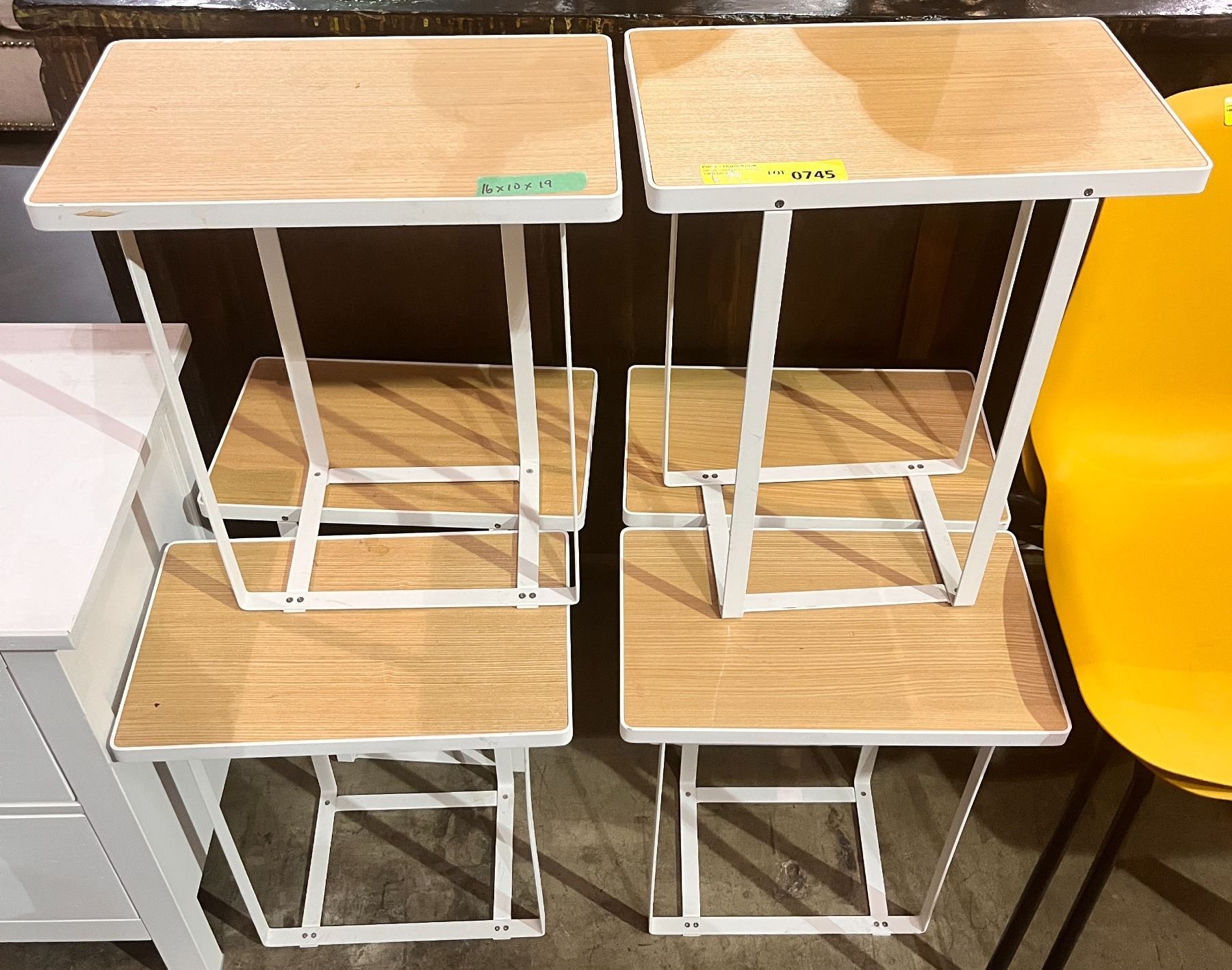 6 Metal & wood small end tables (16in W 10in D 19in H)
