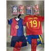 6 NEW 'LAMINE YAMAL' #19 BARCELONA SOCCER UNIFORMS, INCLUDES JERSEY, SHORTS AND SOCKS, 2 SIZE 20,