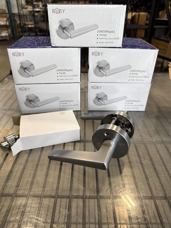 6 NEW LONDON DOOR HANDLES, SATIN CHROME FINISH, GRADE 3, ROUND COVER