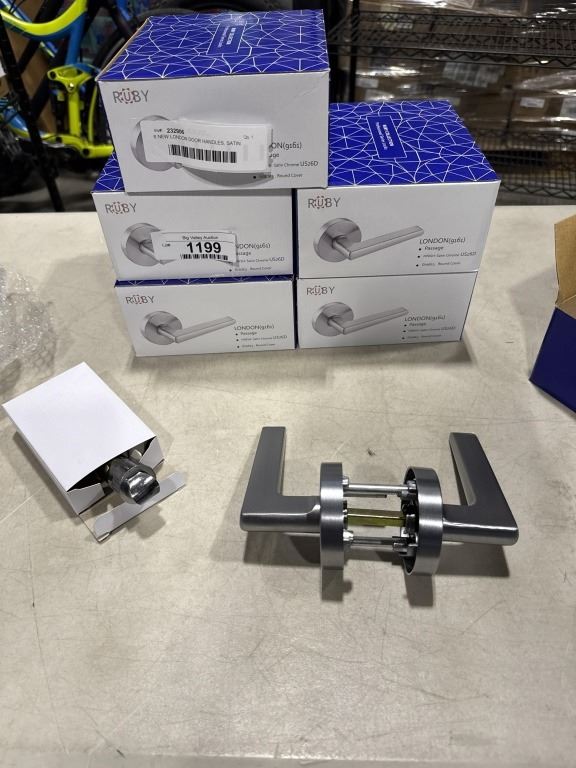 6 NEW LONDON DOOR HANDLES, SATIN CHROME FINISH, GRADE 3, ROUND COVER