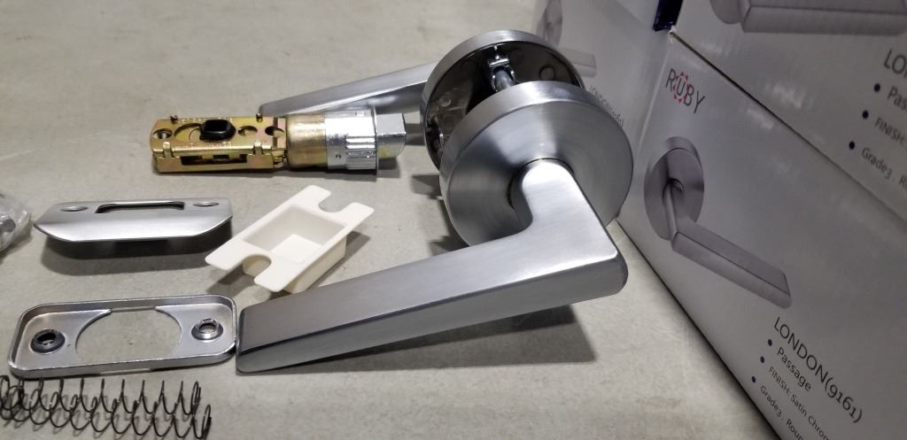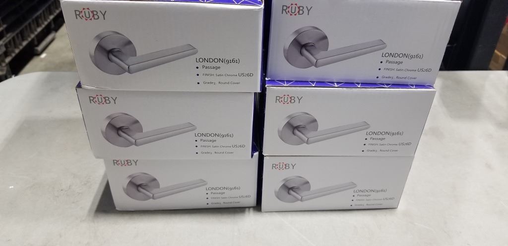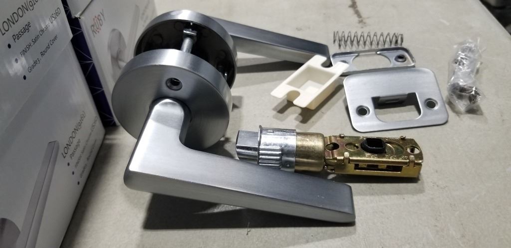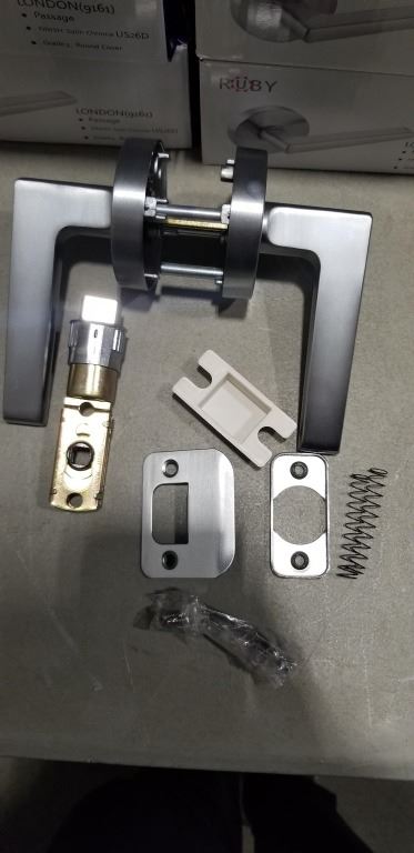 6 NEW LONDON DOOR HANDLES, US26D SATIN FINISH, ANSI GRADE 3, ROUND COVER
