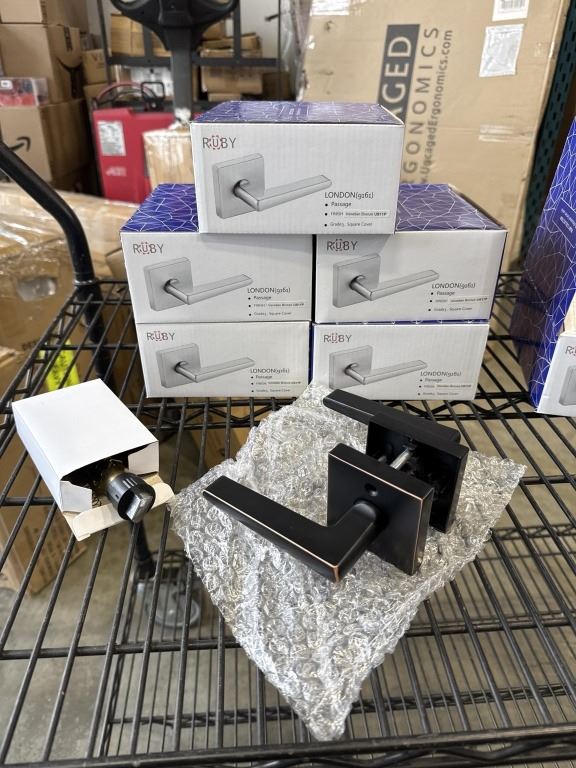 6 NEW LONDON PASSAGE DOOR HANDLES, VENETIAN BRONZE, GRADE 3, SQUARE COVER