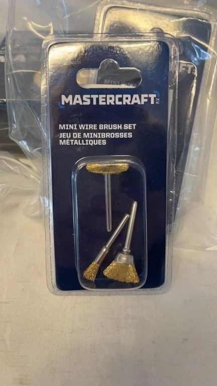 6 NEW PACKS MAXIMUM 5 INCH HOOK AND LOOP SANDING DISCS AND 9 NEW MASTERCRAFT MINI WIRE BRUSH SETS - RETAIL $135