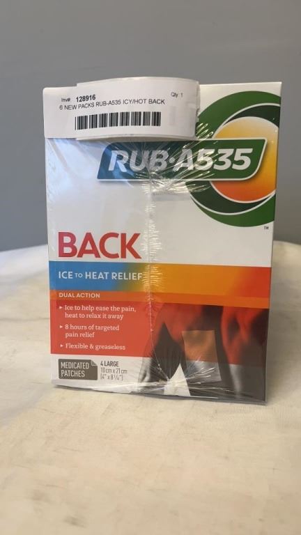 6 NEW PACKS RUB-A535 ICY/HOT BACK RELIEF PADS - TOTAL RETAIL $89, EACH PACK CONTAINES 4 LARGE PADS