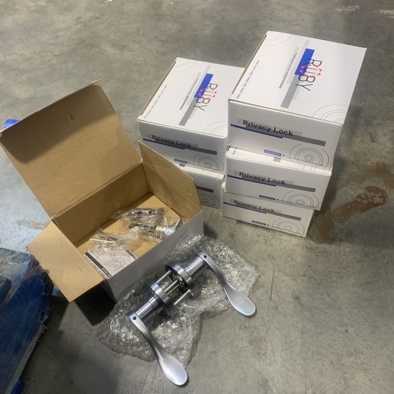 6 NEW PRIVACY DOOR HANDLES, SATIN NICKEL FINISH, RIGHT HAND OPEN