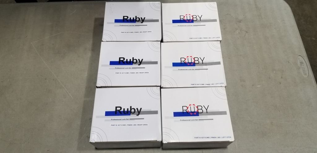 6 NEW PRIVACY LOCKING DOOR HANDLES US26D SATIN FINISH, 3 RIGHT HAND AND 3 LEFT HAND OPEN