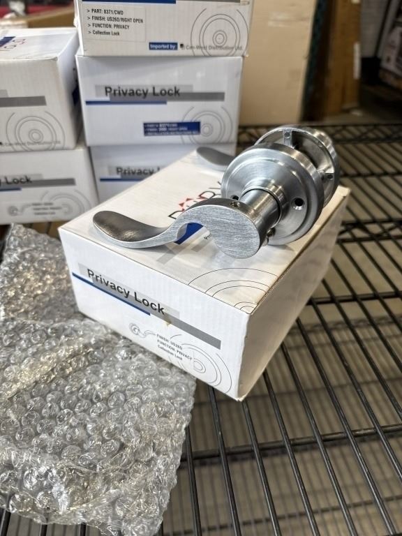 6 NEW PRIVACY SATIN FINISH DOOR HANDLES, 3 LEFT, 3 RIGHT HANDED