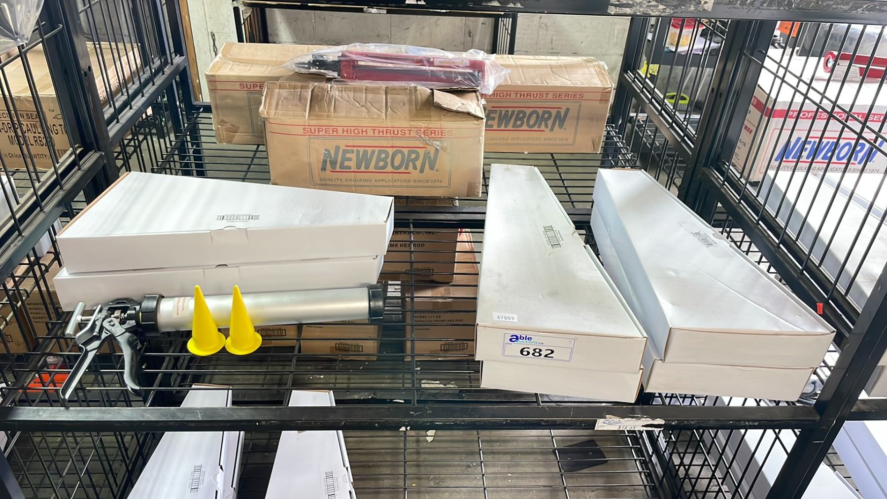 6 NEWBORN 620AL CAULKING GUNS - EACH INCLUDES 3 YELLOW CONE NOZZLES