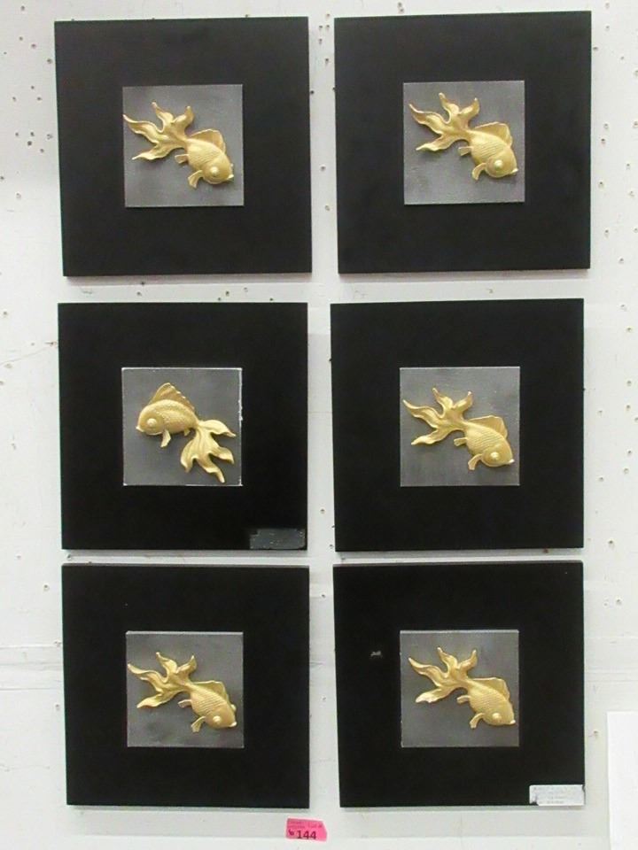 6 New 3D Gold Fish Wall Art - 12" x 12"