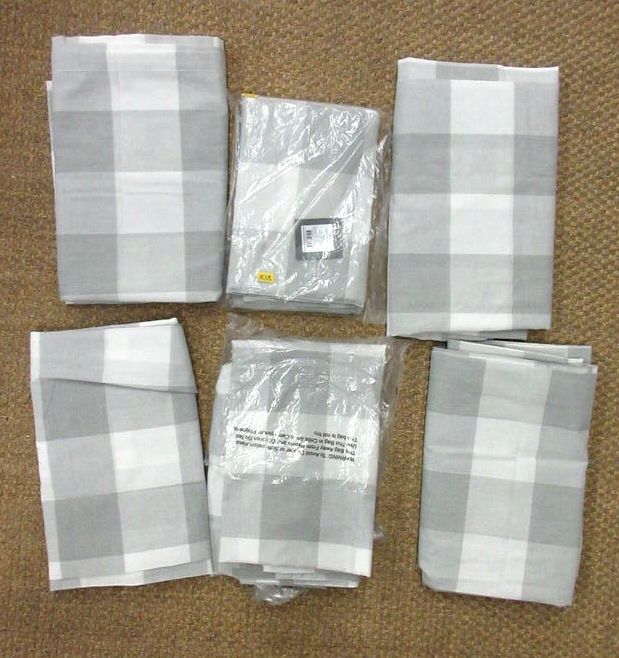 6 New Light Filtering Curtain Panels- Grey Plaid