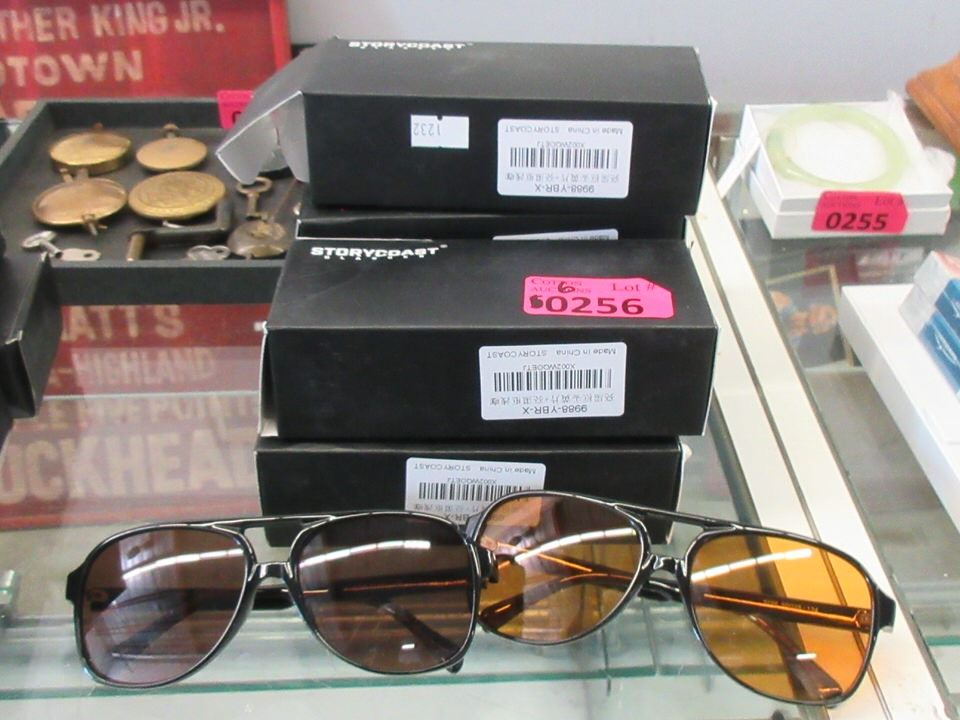 Black frames. 1 Pair has brown lenses and the other amber lenses.
