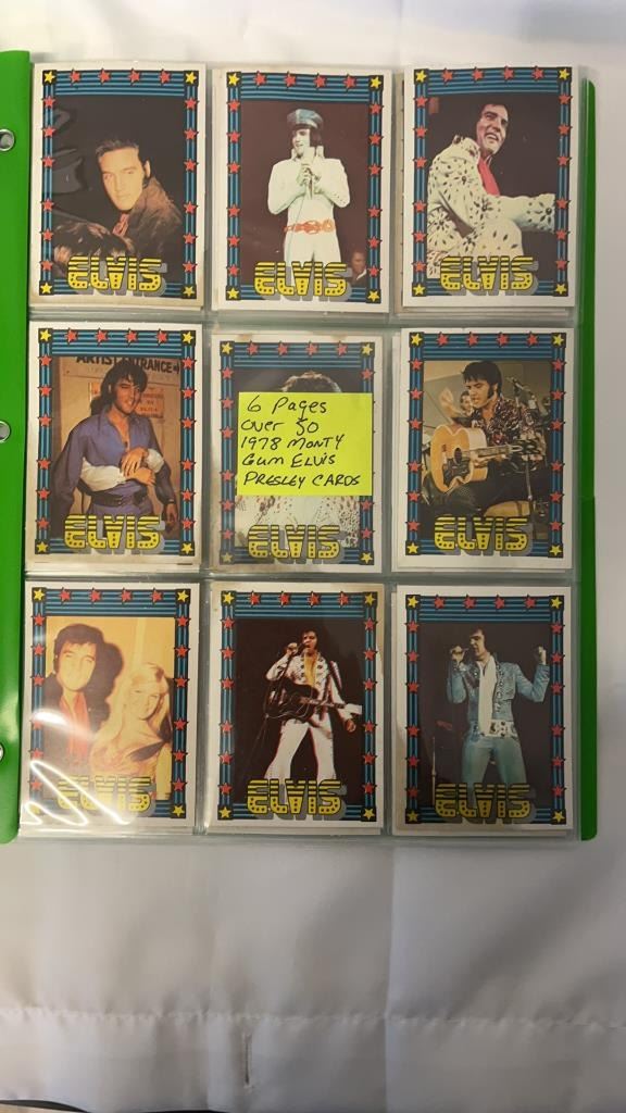 6 PAGES OF ELVIS PRESLEY CARDS - 1978 BY MONTY GUM - OVER 50 CARDS