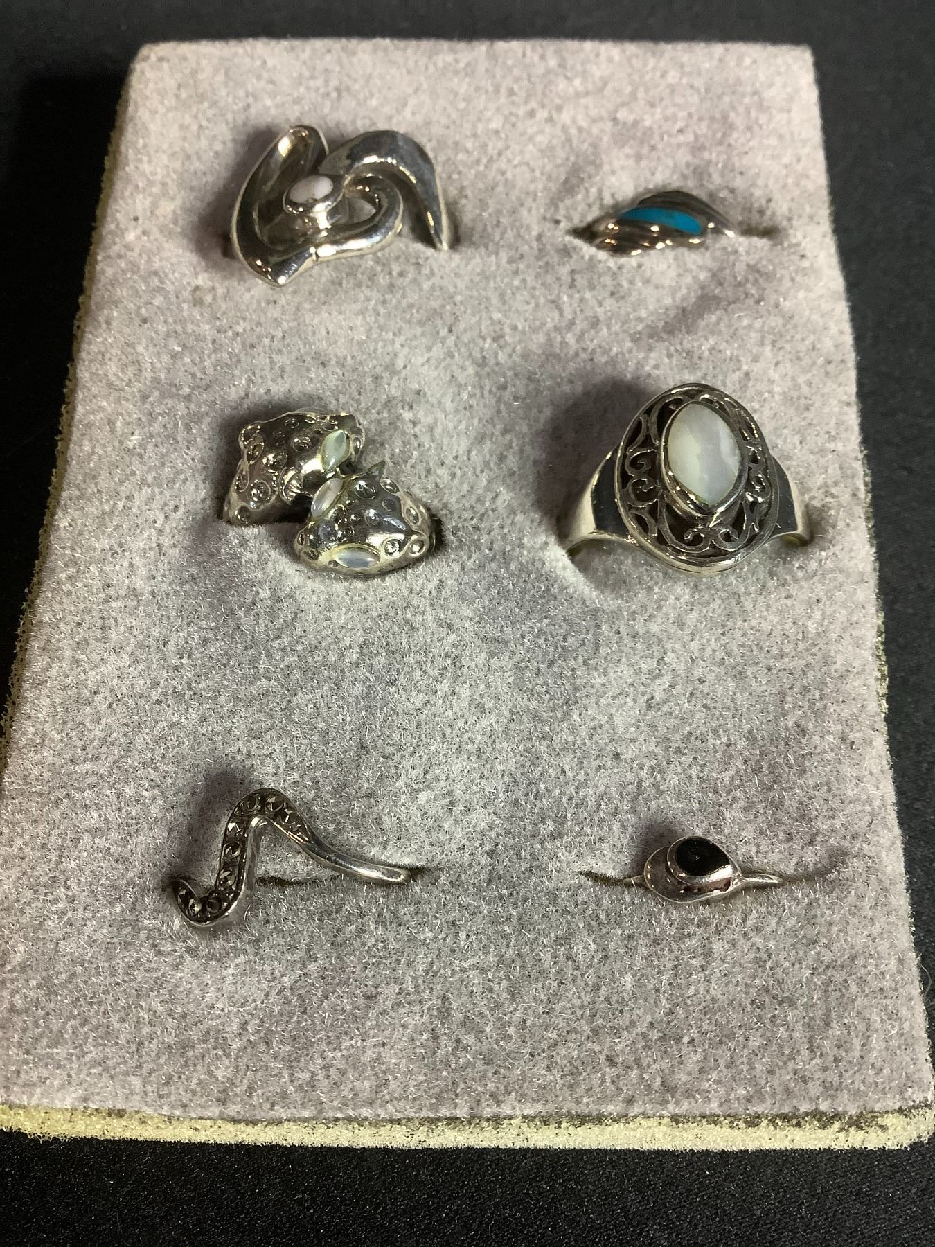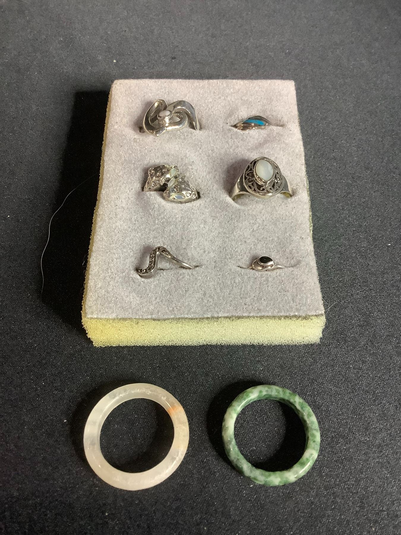 6 PIECES .925 STERLING SILVER RINGS (SOLID NO PLATED) & 2 GEMSTONE BANDS