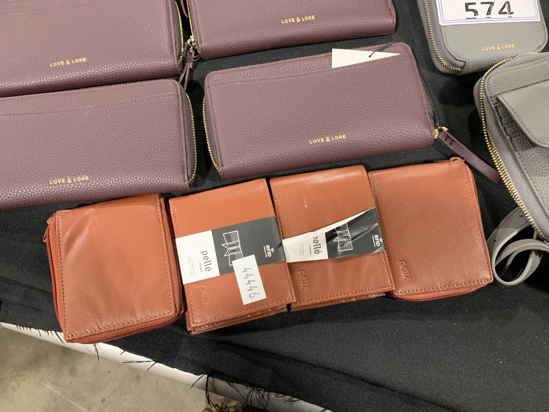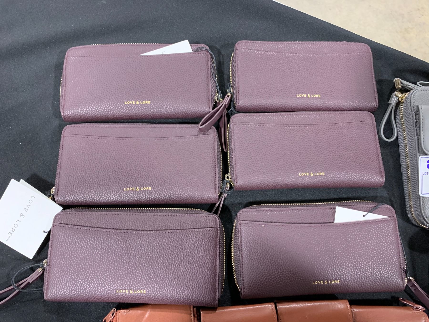 6 PIECES OF LOVE & LORE MAROON LADIES WALLET, 2 GREY SMALL SHOULDER BAG & 4 PCS OF PELLE RFID PROTECTED MEN'S WALLET