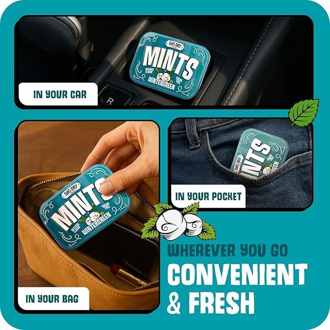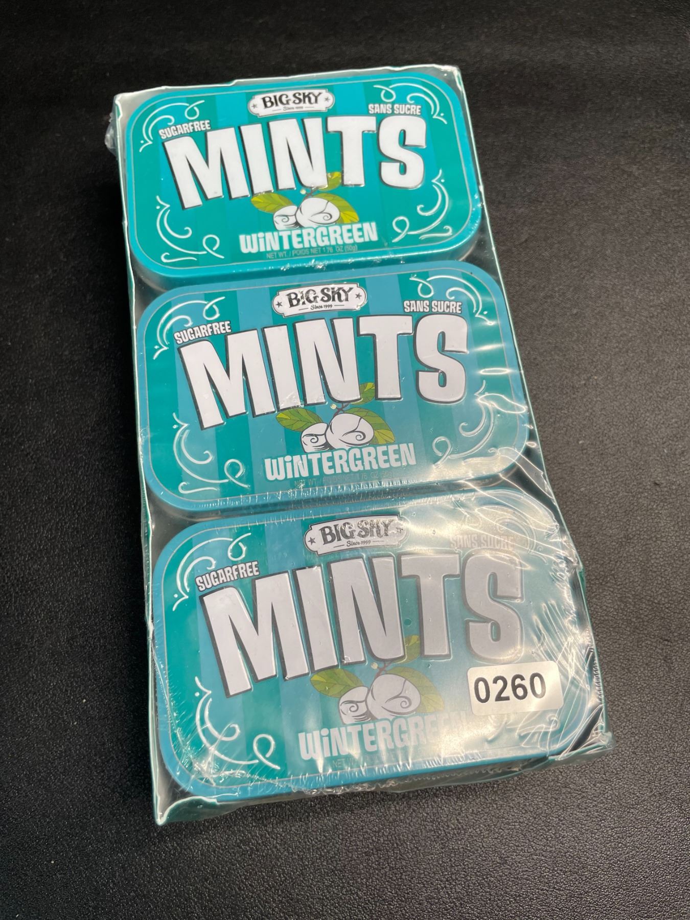 - Big Sky Sugar Free Wintergreen Mint Candy, 50g Tin - 6 Count Display Tray