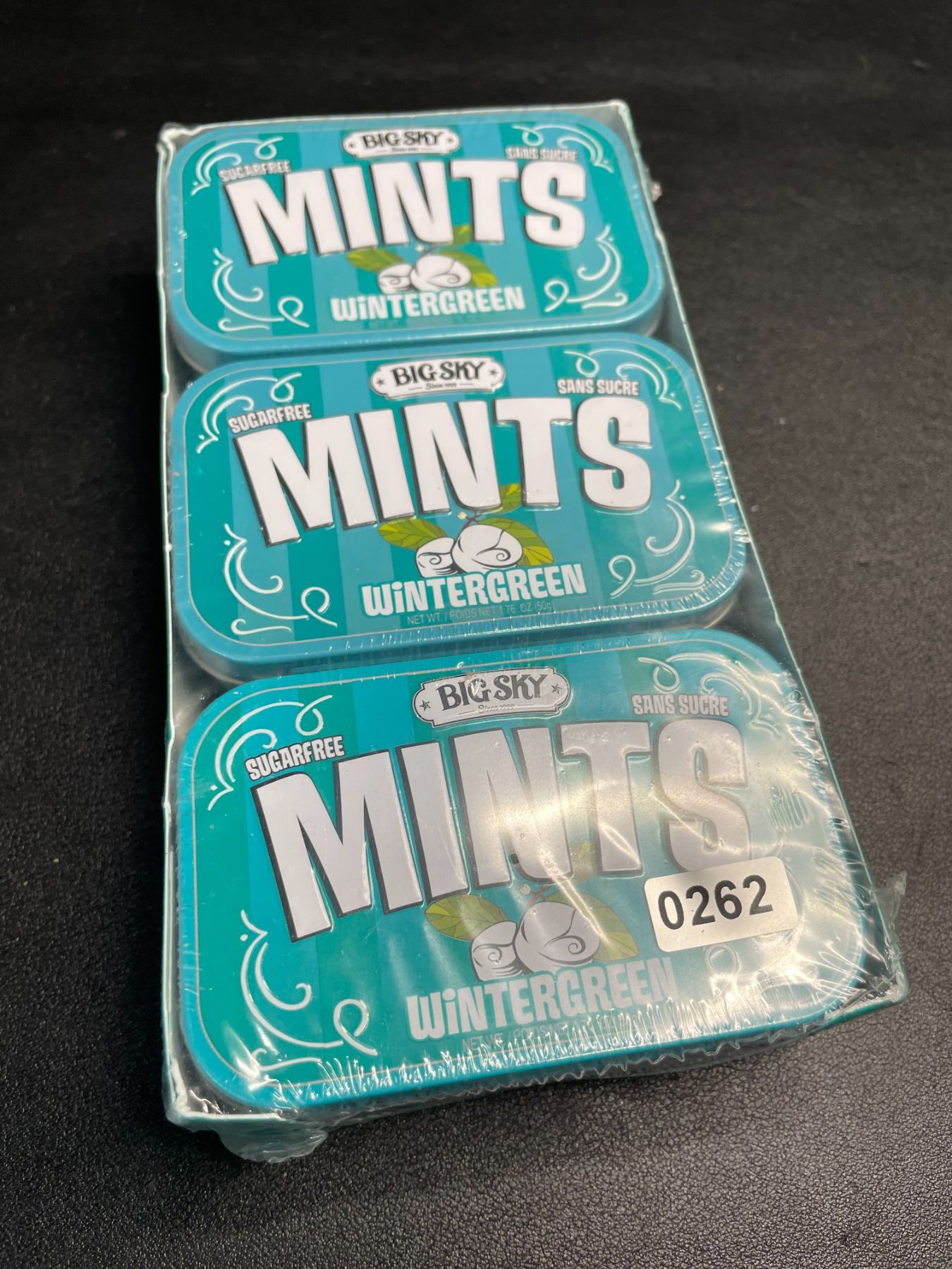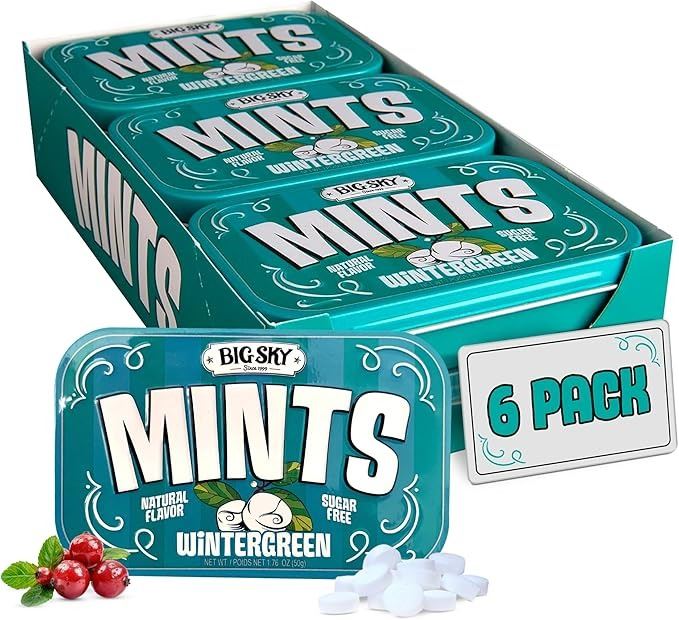 - Big Sky Sugar Free Wintergreen Mint Candy, 50g Tin - 6 Count Display Tray