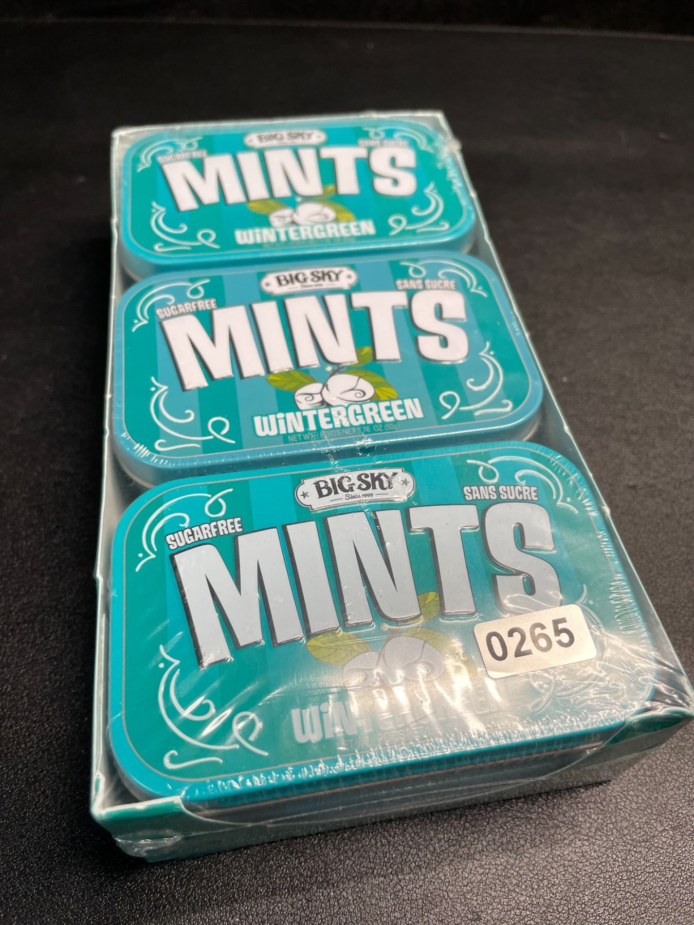 - Big Sky Sugar Free Wintergreen Mint Candy, 50g Tin - 6 Count Display Tray