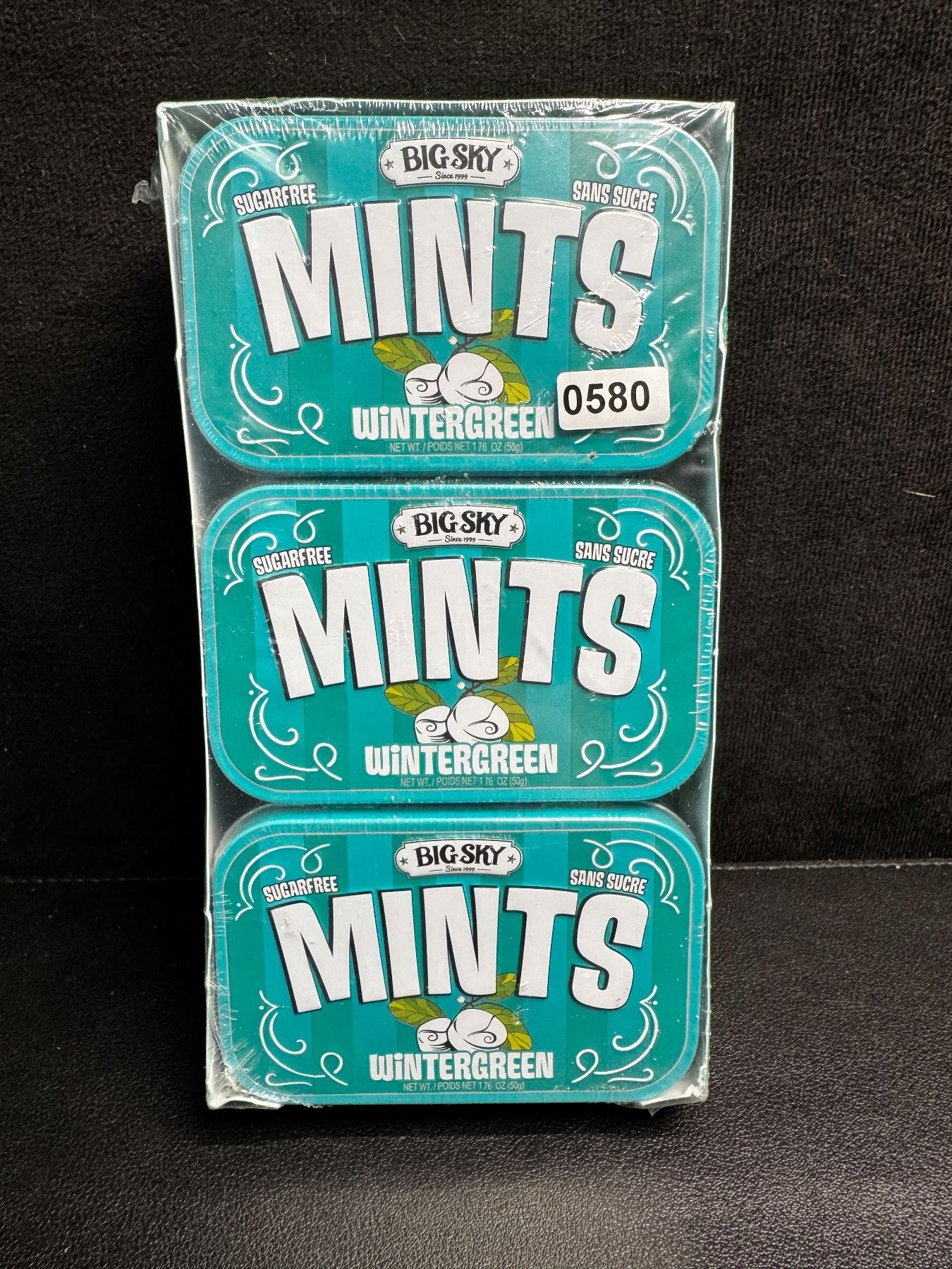 - Big Sky Sugar Free Wintergreen Mint Candy, 50g Tin - 6 Count Display Tray