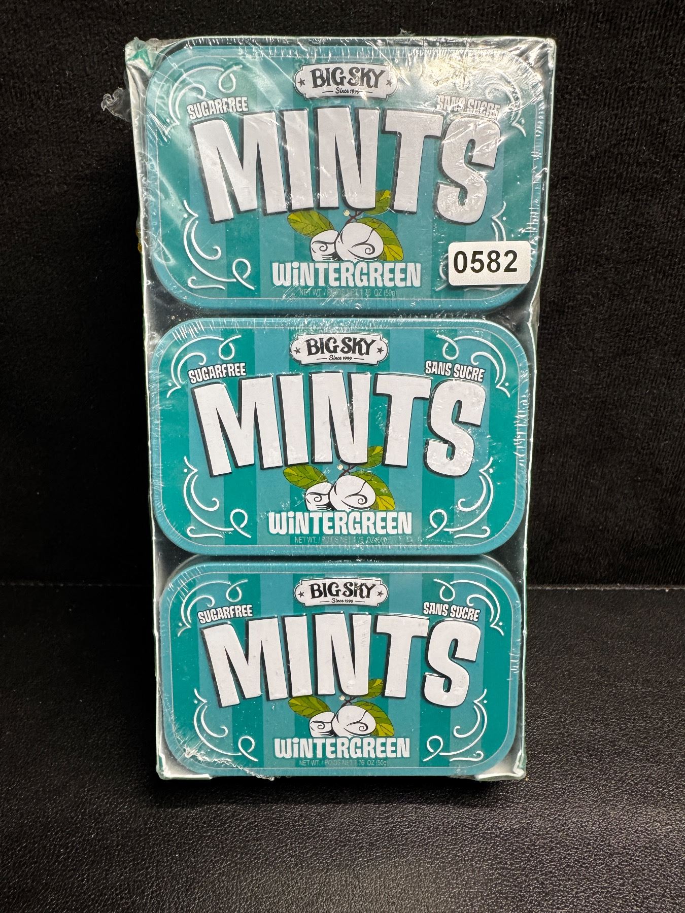 - Big Sky Sugar Free Wintergreen Mint Candy, 50g Tin - 6 Count Display Tray