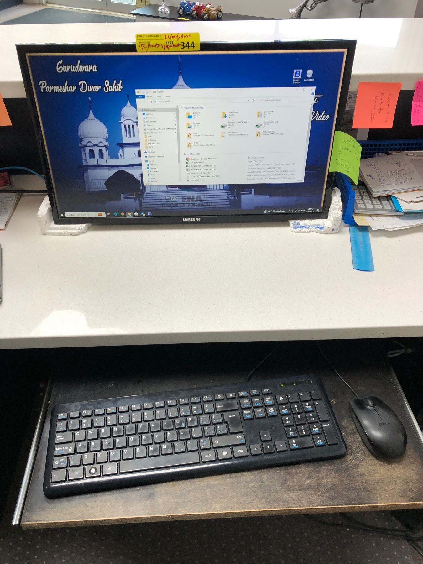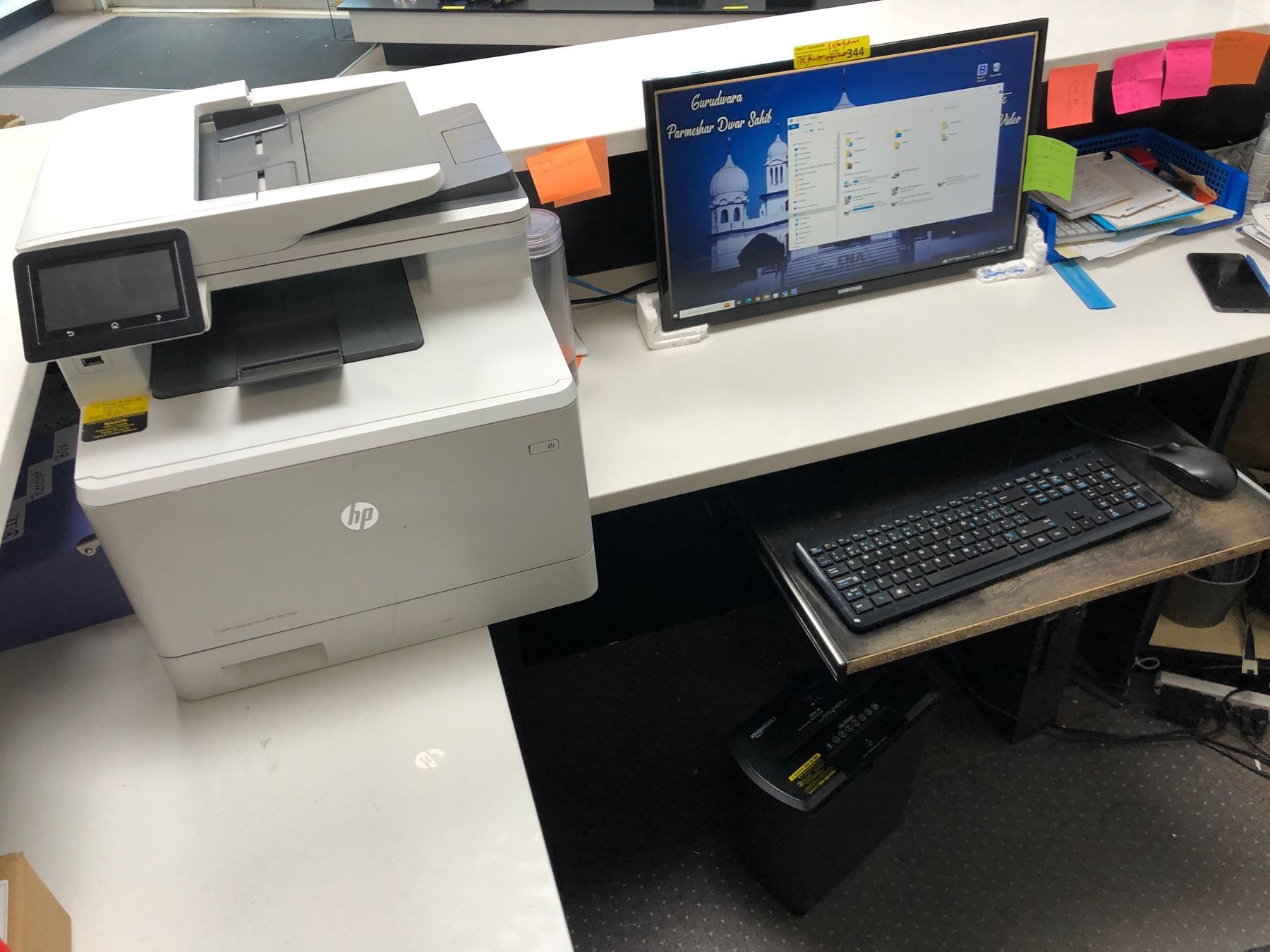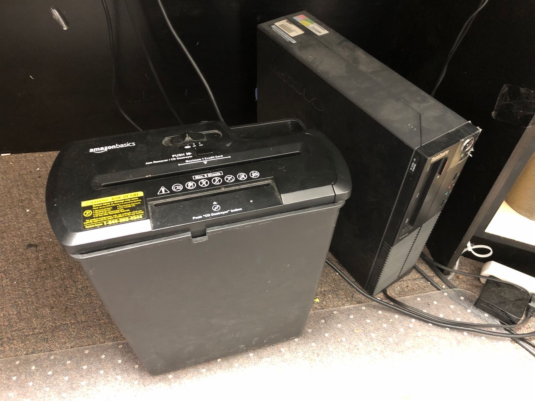 6 Pce workstation electronics set HP colour laserjet pro MFP printer/Samsung monitor, keyboard mouse set, paper shredder, Lenovo ThinkCentre PC (8GB ram intel core i5 64 bit operating system)