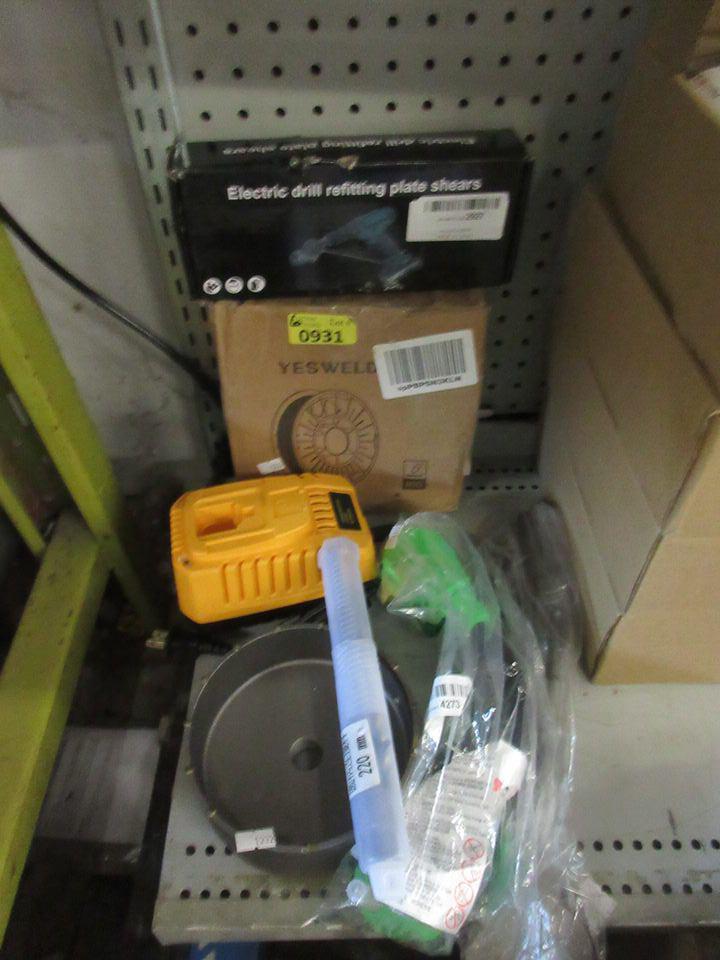 Drill plate shears, tool battery charger, bit, chisel heads and more.