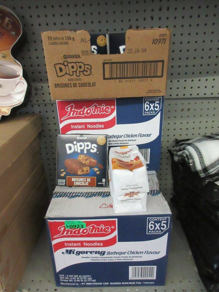 3 Cases of instant BBQ Noodles, Case of Dipps & 2 Packs of Pepperidge Farm cookies. Variety of BB Dates.
