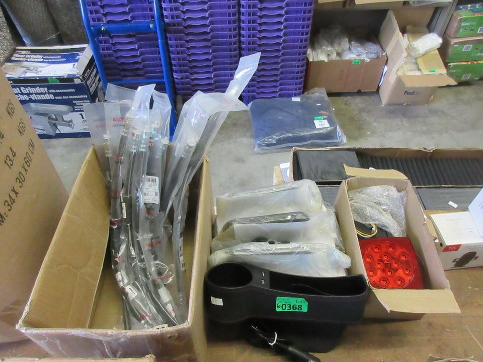 4 Slim Seat Storage Consoles, trailer lights and box of brake hose.