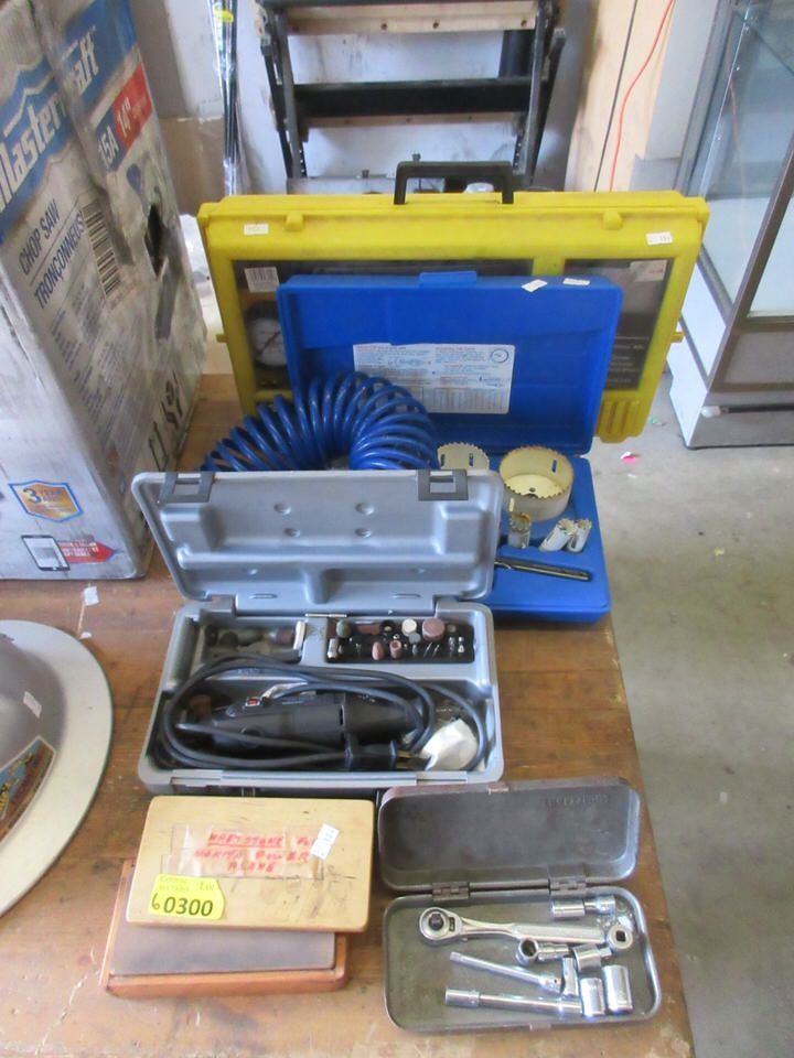 Dremel, hole saw kit, timing light, and more.